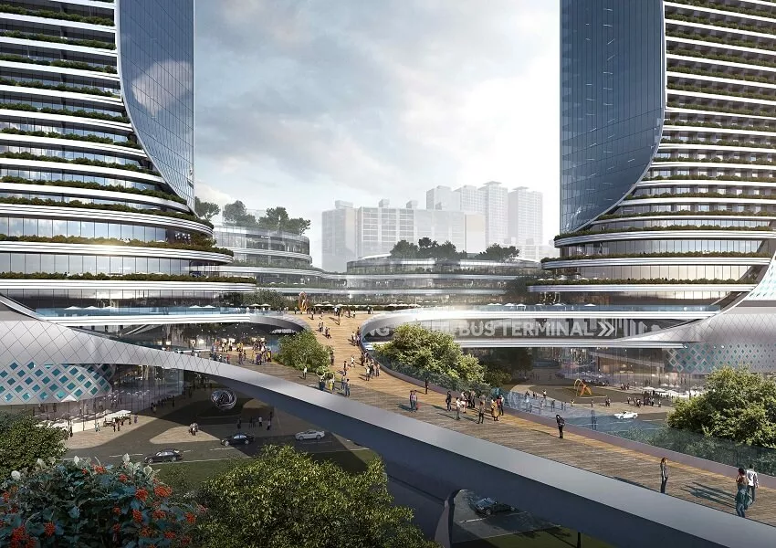 The road leading to The East Seoul Bus Terminal designed by Farrells
