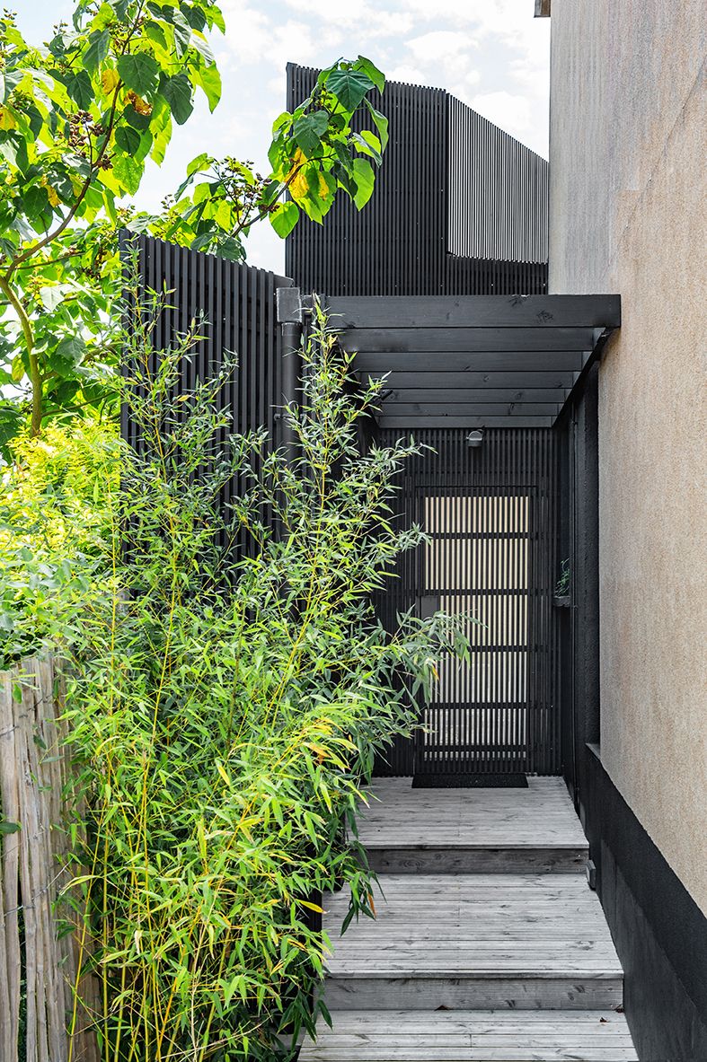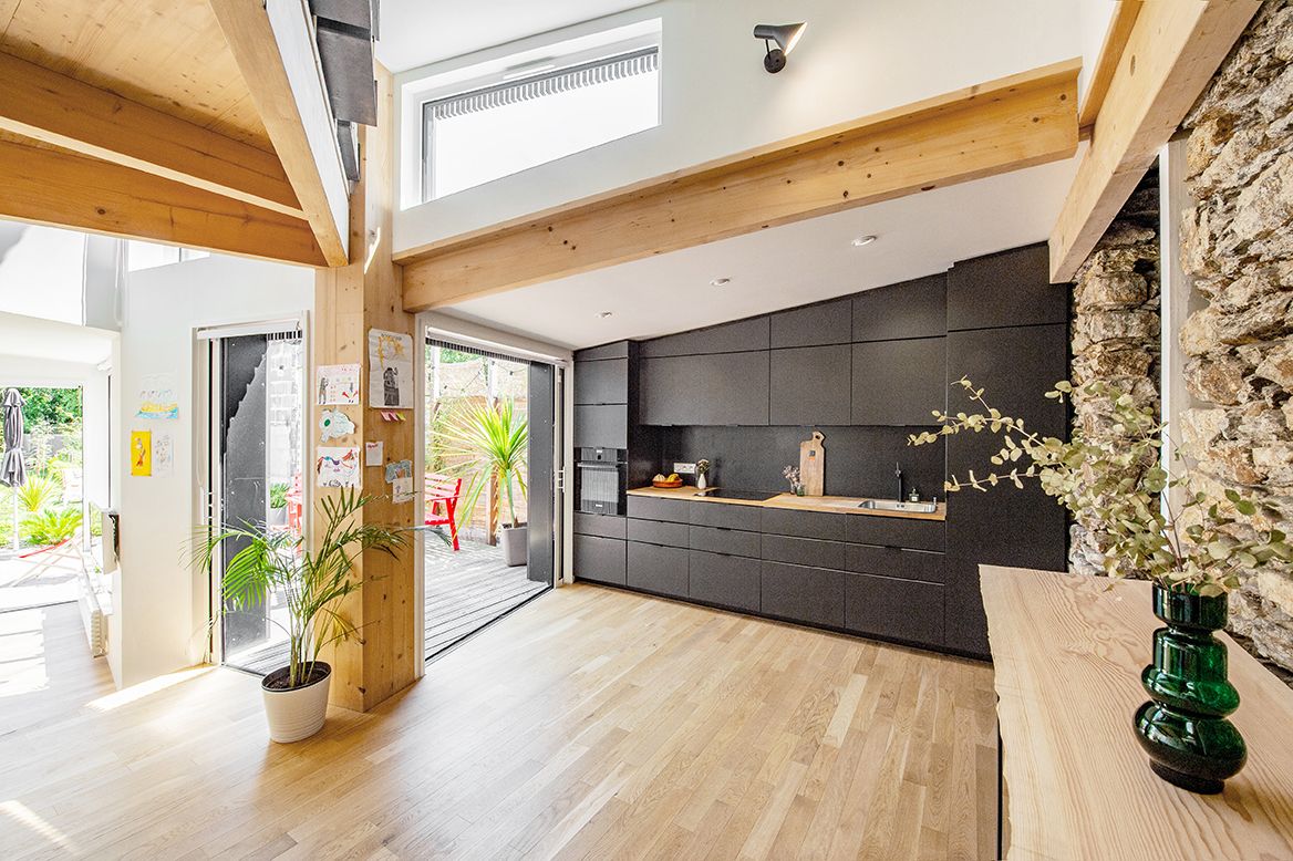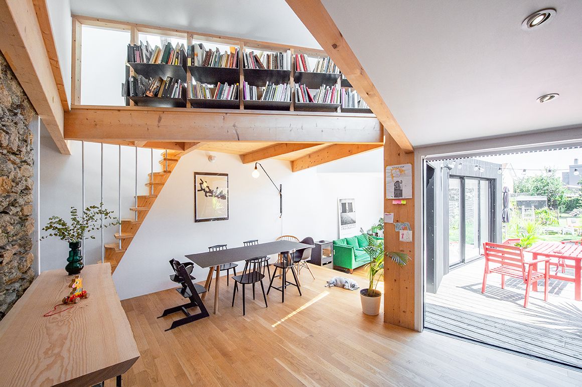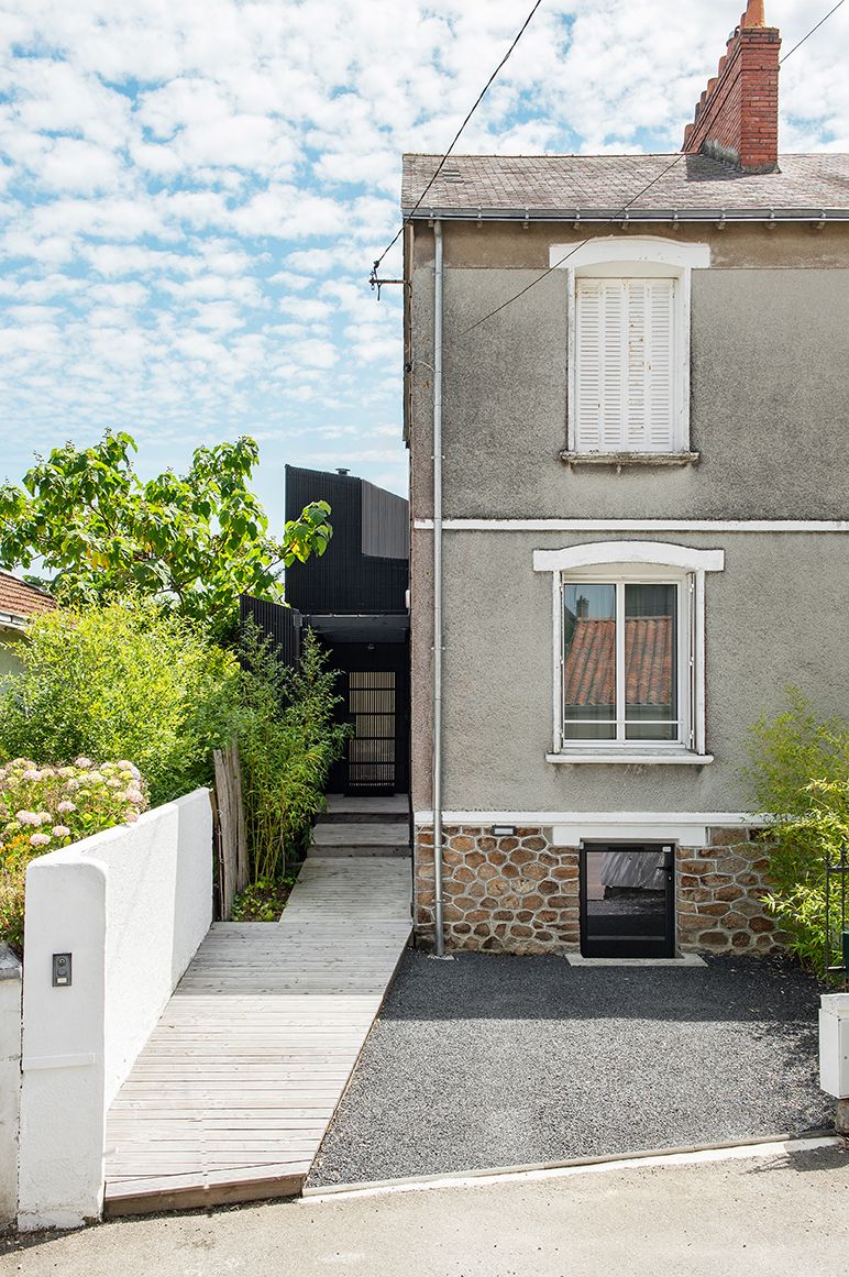 The project is located in the municipality of Rezé in a low density area with a neighborhood composed mainly single houses. The plot accommodates a house built in the 30s which is adjoining and symmetrical to a attached house. These two attached houses constitutes a built complex that seems to be a single individual house. Only a careful lecture of the facades can reveal the duplicity of the dwellings : the presence of the fence that separates the two street yards or the exits of the chimneys on the roof, that are located in the middle of the volume instead of being on one of the gables.