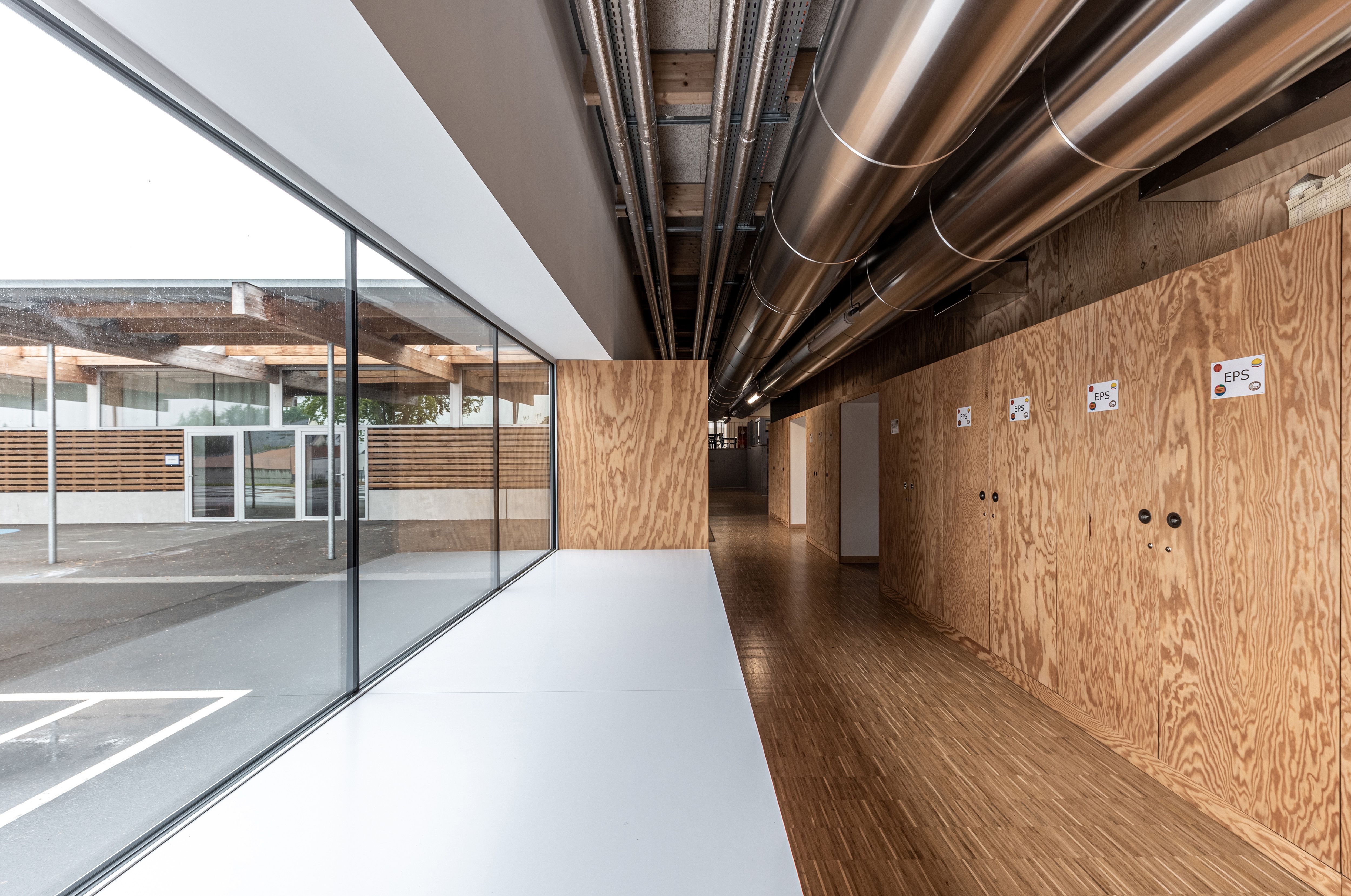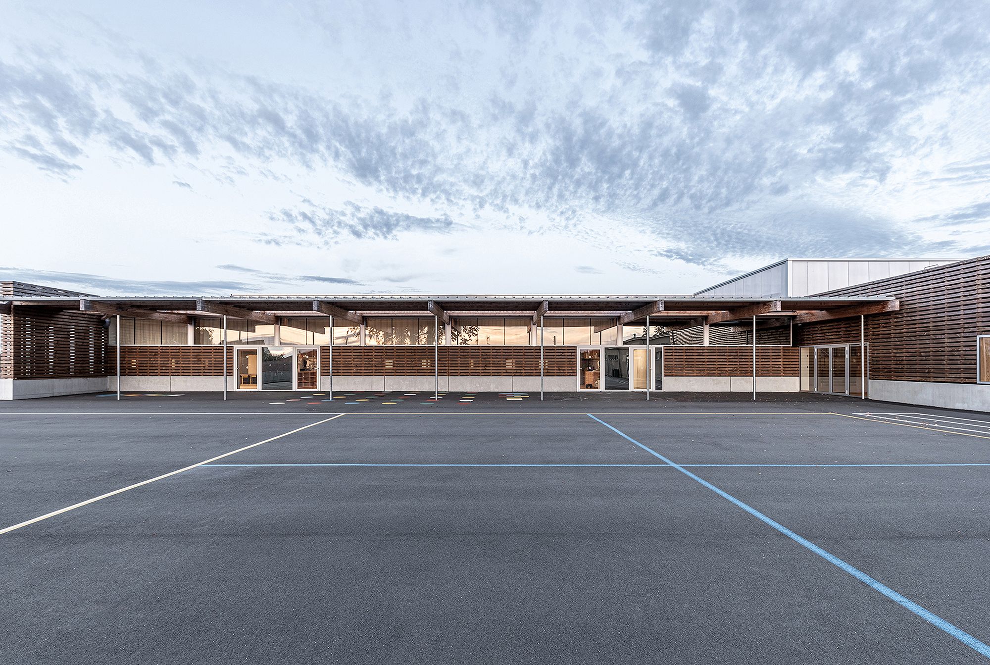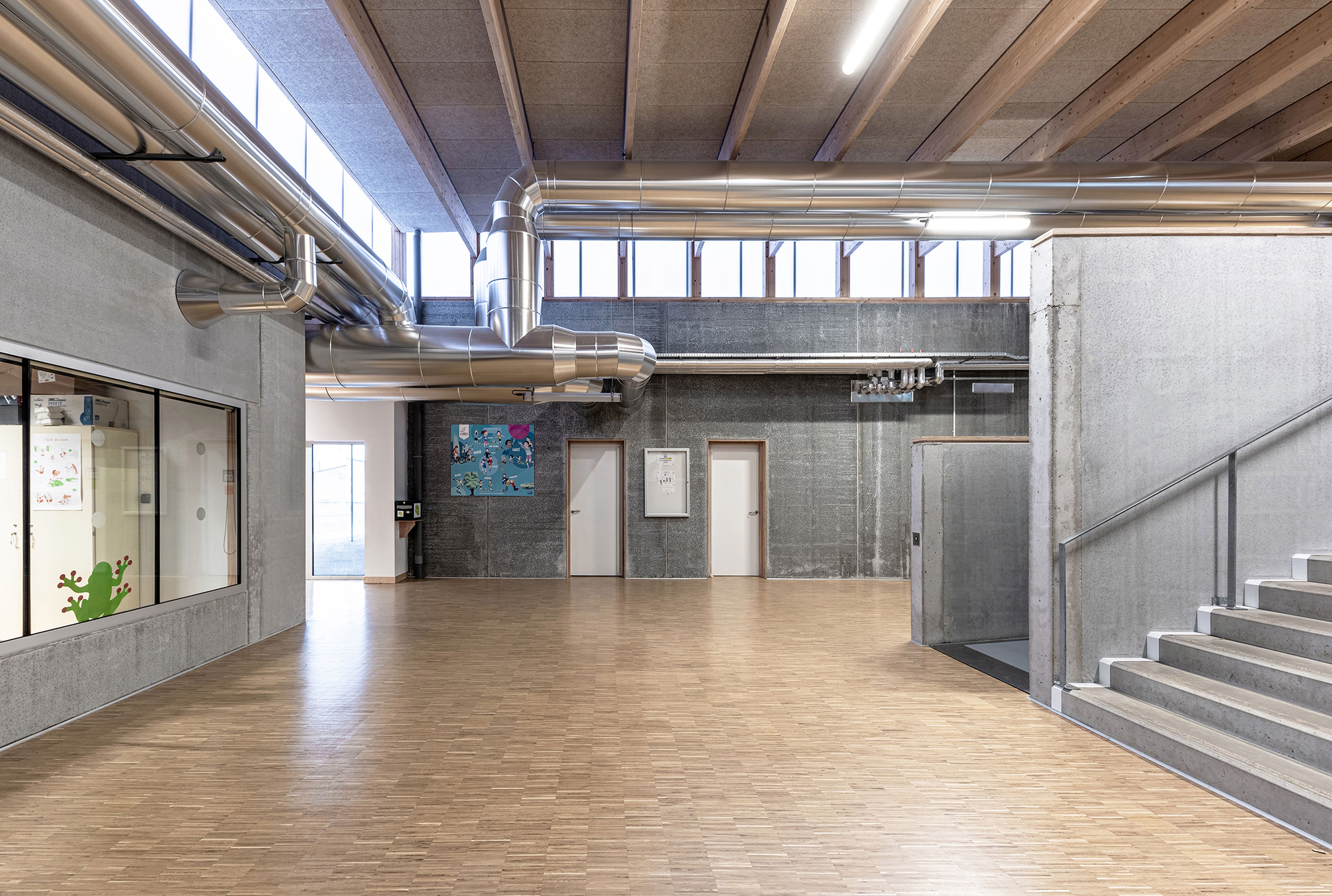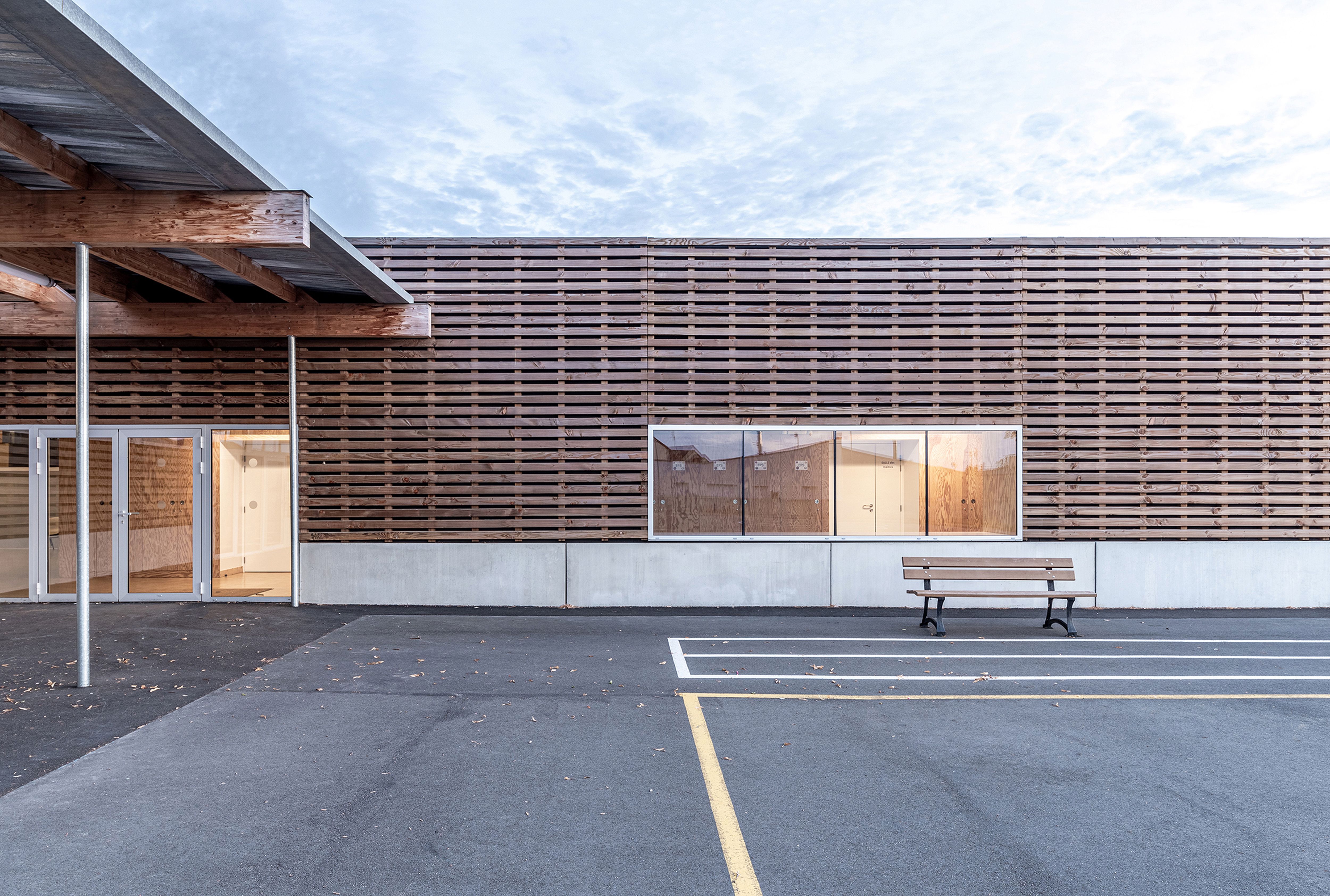 Ambrières-les-Vallées is a small rural commune in the west of France. The public school is located on the edge of the town center, in a mixed area where isolated individual houses, sports fields and technical buildings are intermingled. While the initial program is limited to proposing multiple scattered renovations and extensions, the architecture of the project proposes a comprehensive long-term functional and economic strategy. Rehabilitate as much as possible, deconstruct only what cannot be preserved, and take advantage of this to design the new articulations of the school.